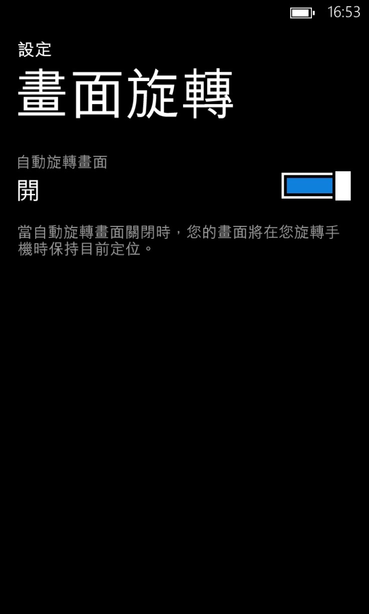 在GDR3,用户可以在「設定」中進入「畫面旋轉」頁面,可以開關自動旋轉畫面。當在關閉此功能後,即使將手機横放,都不會將畫面旋轉。