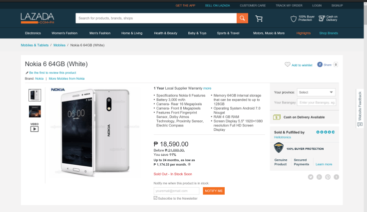 HMD Global just reached out to us to deny the existence of a white Nokia 6. Moreover, HMD Global reiterated that the Nokia 6 is not being sold officially outside of China. The seller on Lazada is a third party not authorized by HMD Global.