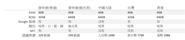 故此,現時 Nokia 6 至少有五個版本,或者會令人感到眼花撩亂,所以小編特意製作了一個圖表,方便大家比較各個版本的分別和售價,一目了然。