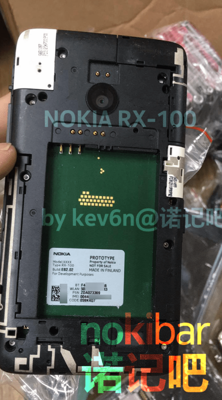從外洩之相片可見,這部工程機的代號為 “RX-100″,實體鍵盤一共有39個按鈕,而鍵盤上方有輕觸式 Windows Phone 三天皇鍵,進一步肯定它是一部 Windows Phone,並非 Symbian 或 Asha 的手機。可是,這部工程的機身設計有點古怪,螢幕邊框極粗,更看似是在一部全觸控手機中加入一部鍵盤手機的樣子。從目測可見, RX-100 設有兩個聽筒,非常有趣。