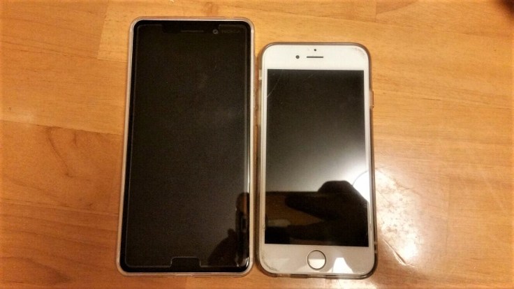 跟 iPhone 6 合影一張 (大家都係6),Nokia 6 比 iPhone 6 大了不少,畢竟後者的螢幕只得4.7″。