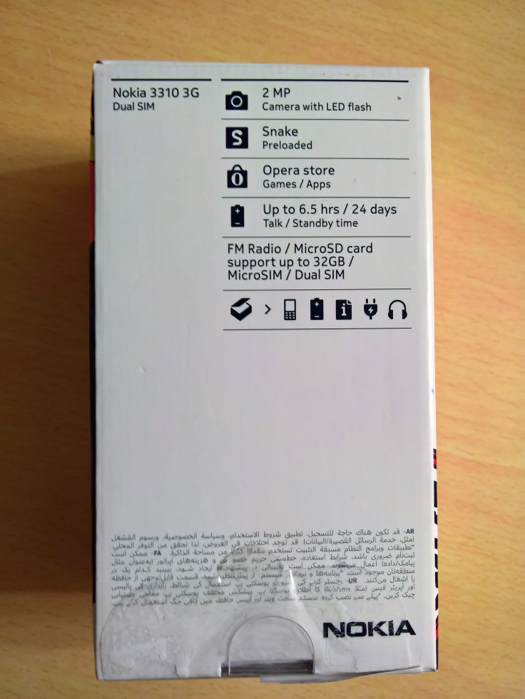 Nokia 3310 (2017) 3G版的包裝盒跟過往的 Nokia 功能手機不同,使用透明塑膠來蓋著,令人見到手機的真面貌。