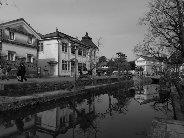 有名的倉敷美景地區,水邊有天鵝一雙,好不寫意