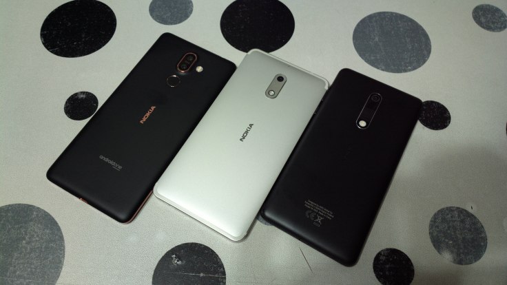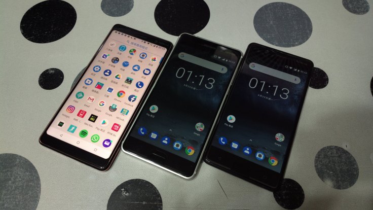 左起: Nokia 7 Plus、Nokia 6、Nokia 5,可見 Nokia 5 與 Nokia 6 的大小接近