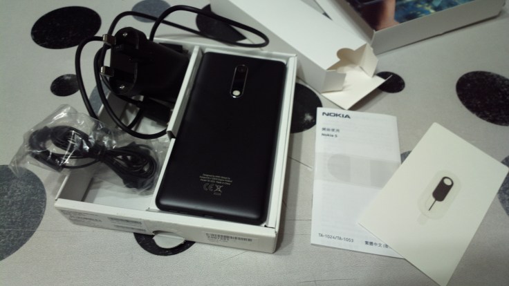 配件有充電器、耳筒、SIM 卡針。據他所述,Nokia 5 的 SIM 卡針沒有 Nokia logo