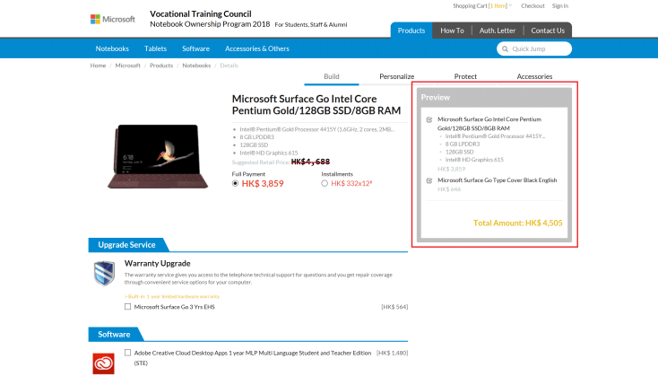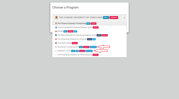 跟去年不同,Notebook Ownership Programme 的網頁無法找到部分大學及大專,在撰稿時,只見中大、浸大、港大、公大、理大、東華學院、VTC、UOWCHK/CCCU、演藝學院。當中提供 Microsoft (即 Surface 電腦) 優惠的只有 VTC 及 UOWCHK/CCCU。連結: https://www.hknotebook.com/np18//。