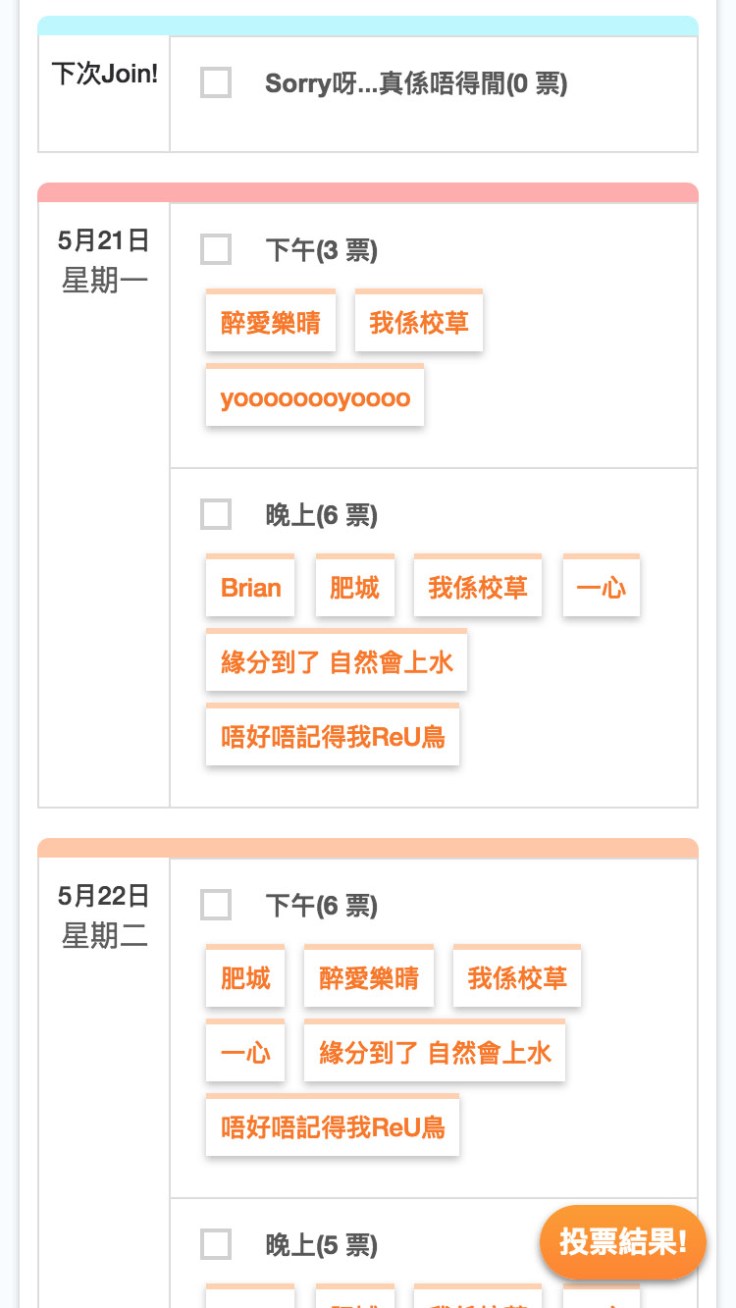 投票個過程都幾user friendly同好玩,首先搞手可以寫返個搞鬼嘅聚會主題,投票嘅人可以自己改個搞笑嘅名,又可以隨時加多啲日子時間或者地點/活動嘅建議比大家投票,有個貼心嘅位係佢仲有得比大家揀返自己埋budget,而budget嘅選擇係不記名架,姐係如果你果排手緊想慳啲又唔想比其他人知嘅話,就不妨提議搞手用依個工具啦!