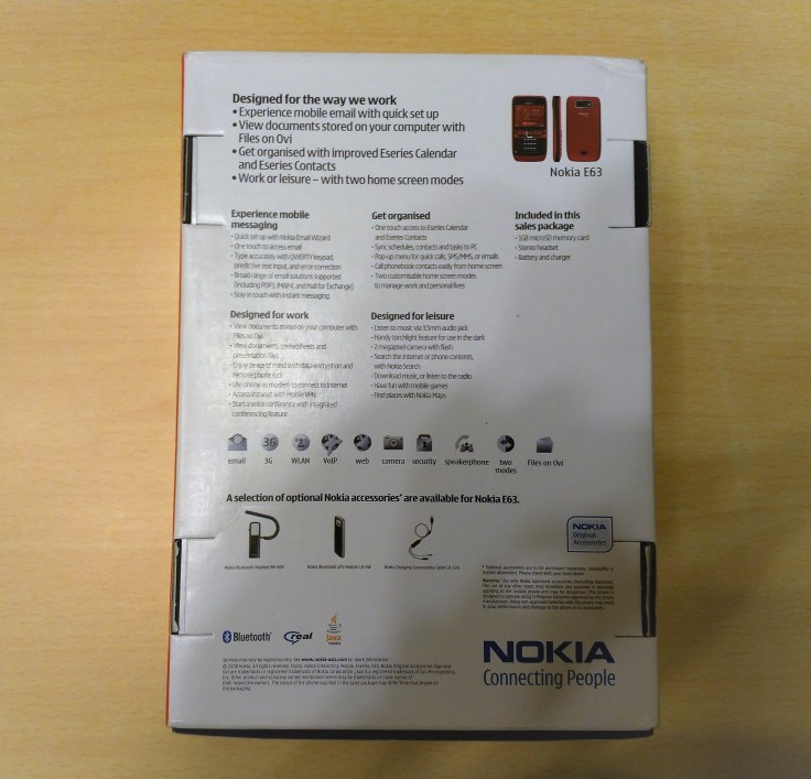 今年是2019年,HMD Global 沒有推出 Nokia 品牌的全鍵盤手機,TCL 就推出 Blackberry 品牌的全鍵盤 + touch screen 手機,但機身面積變得很大,嚴格來說已非上文所講的全鍵盤手機。十年過去,不少人轉用 iPhone 覆 email,同時 Whatsapp 等即時通訊軟件已經令 email 的重要性略為減低。或者這類全鍵盤手機已成歷史,不過 Man 一直很渴望擁有一部全鍵盤手機,剛巧在網上見到有人放售全新 Nokia E63,售六百元,就買了一部。