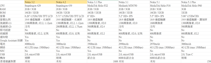 2. Nokia 3.2、Nokia 4.2 的建議售價分別為139美元及169美元