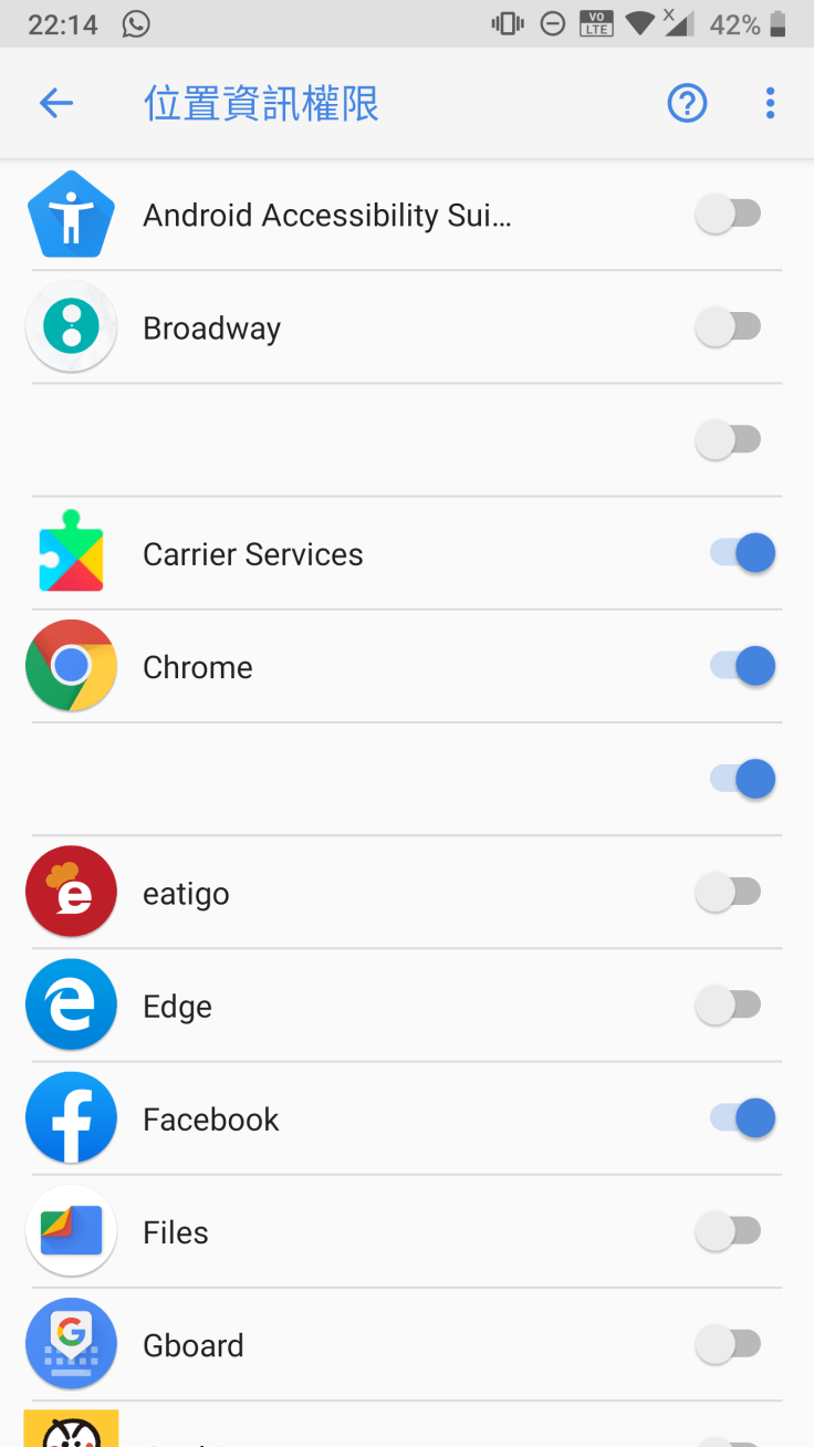 這裡會例如所有程式,大家可以一次過設定,根據自己的判斷、喜好、需要決定限制哪些程式使用定位功能。