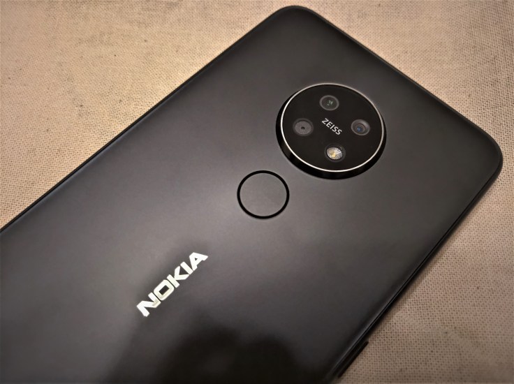 跟較早前上市的 Nokia 4.2、Nokia 3.2 一樣,Nokia 7.2 的螢幕為水滴屏,留有一個圓點設前置鏡頭,這個鏡頭有2000萬像素。機身上方提供3.5mm音訊插孔,不用破費買藍芽耳機或 USB Type C 耳機