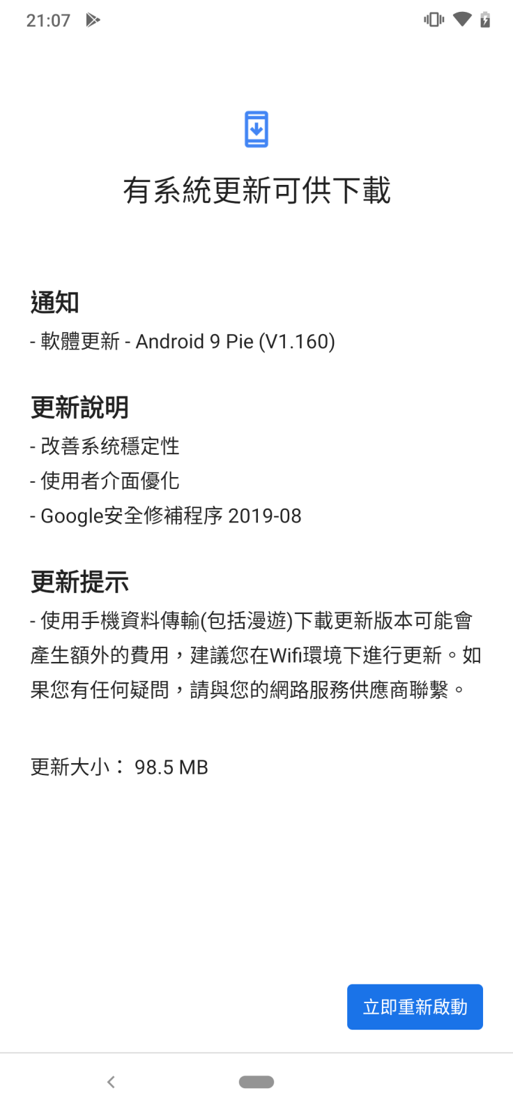 開機後就有更新,遲些可升上 Android 10,記得緊貼本站的 Android 10 升級時間整合文!