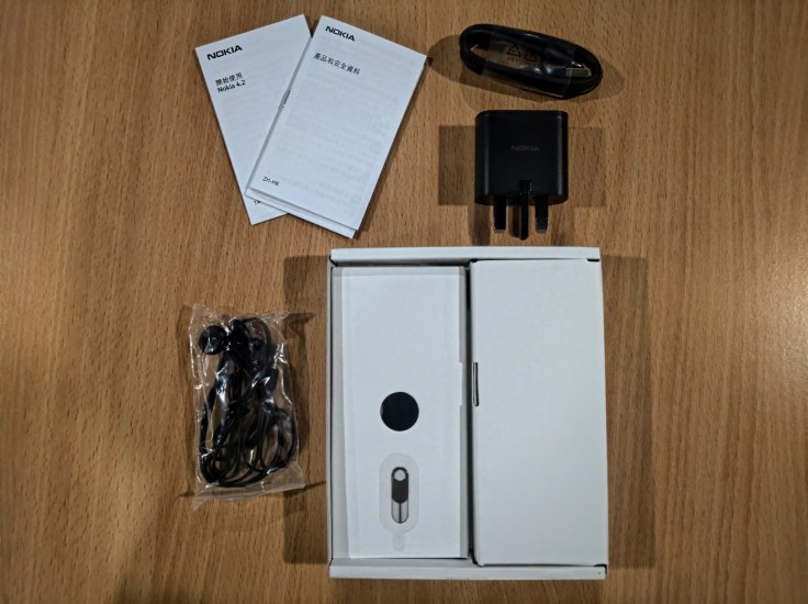 配件一覽。耳筒並非入耳式,對音質又要求的可以另外購買。充電器輸出為 5V 1A,沒有快充,可能基於成本考慮吧