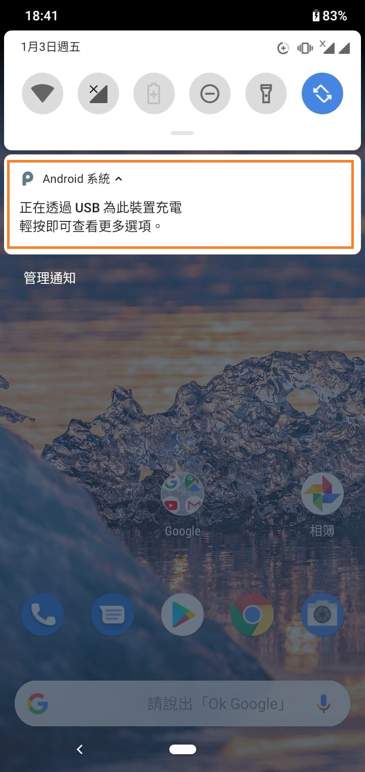 先把手機解鎖,然後拉下通知欄,會見到上圖的通知,按一下箭咀