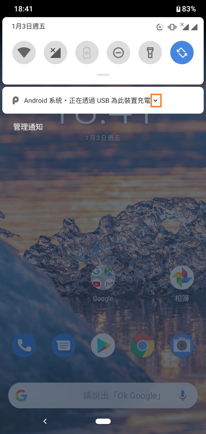 先把手機解鎖,然後拉下通知欄,會見到上圖的通知,按一下箭咀