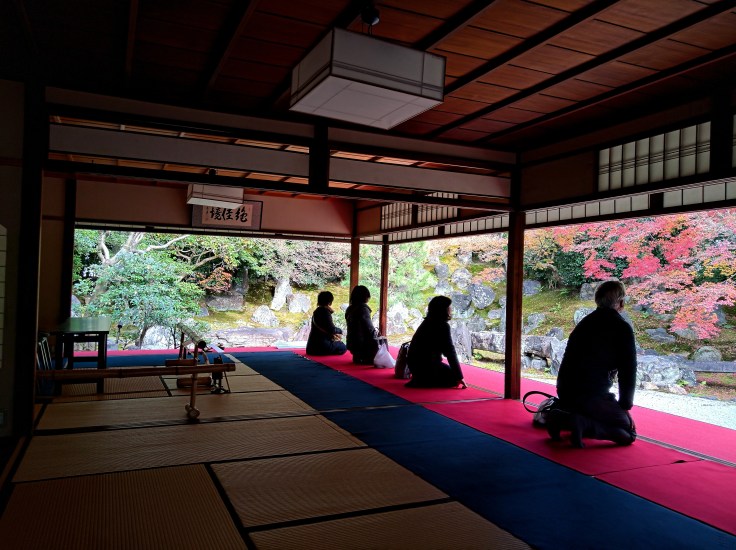 是次到京都,特意到訪一些人煙較少的古寺賞楓,避開遊客過多的賞楓地,例如退藏院、勸修寺、隨心院、青蓮院、圓德院、觀智院,還有東本願寺的銀杏,地上一片金黃。一個人在庭院徐徐漫步,或靜坐一旁,不被煩囂滋擾,倍感舒適寫意,亦可洗心,安心思考。