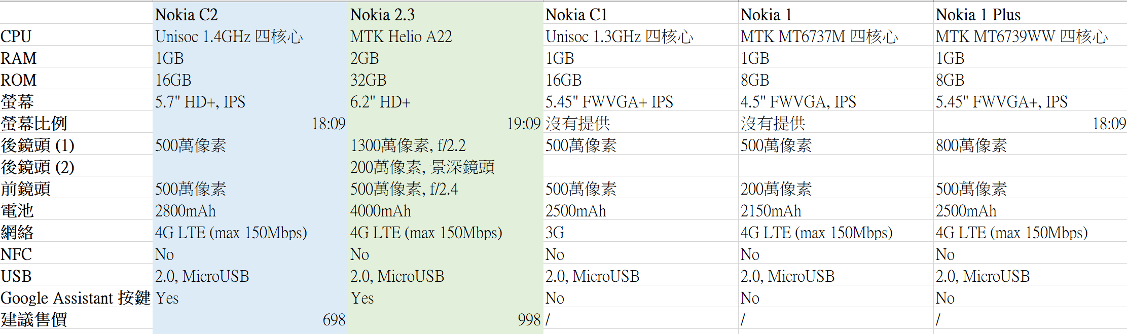 - 目前未有 Nokia C2、Nokia 2.3 台灣上市消息