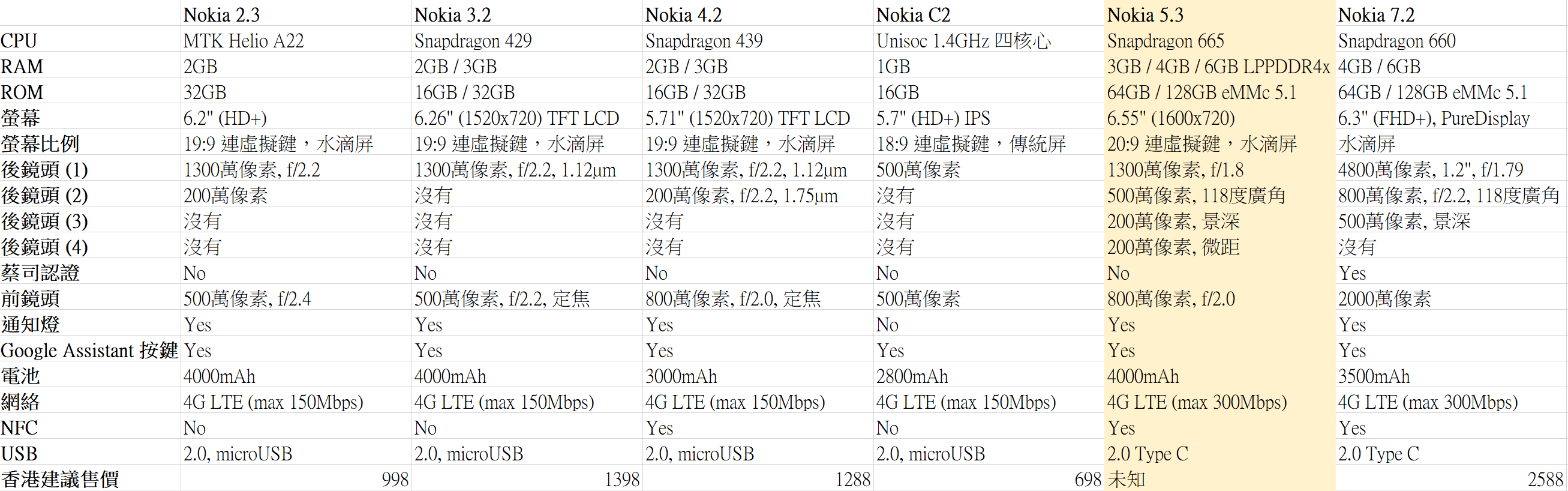 - Nokia 5.3 香港售價為台幣5990