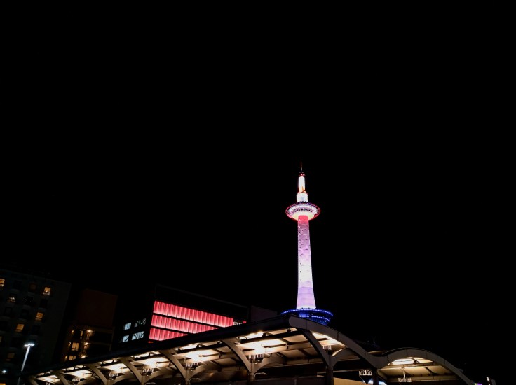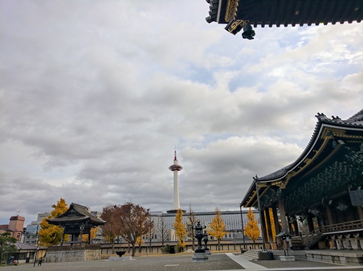 京都塔,新舊交錯。京都政府嚴格控制市內建築物高度,京都塔是唯一的例外