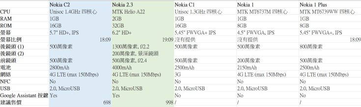 - 目前未知 Nokia 2.3、Nokia C2 於台灣的上市詳情及售價