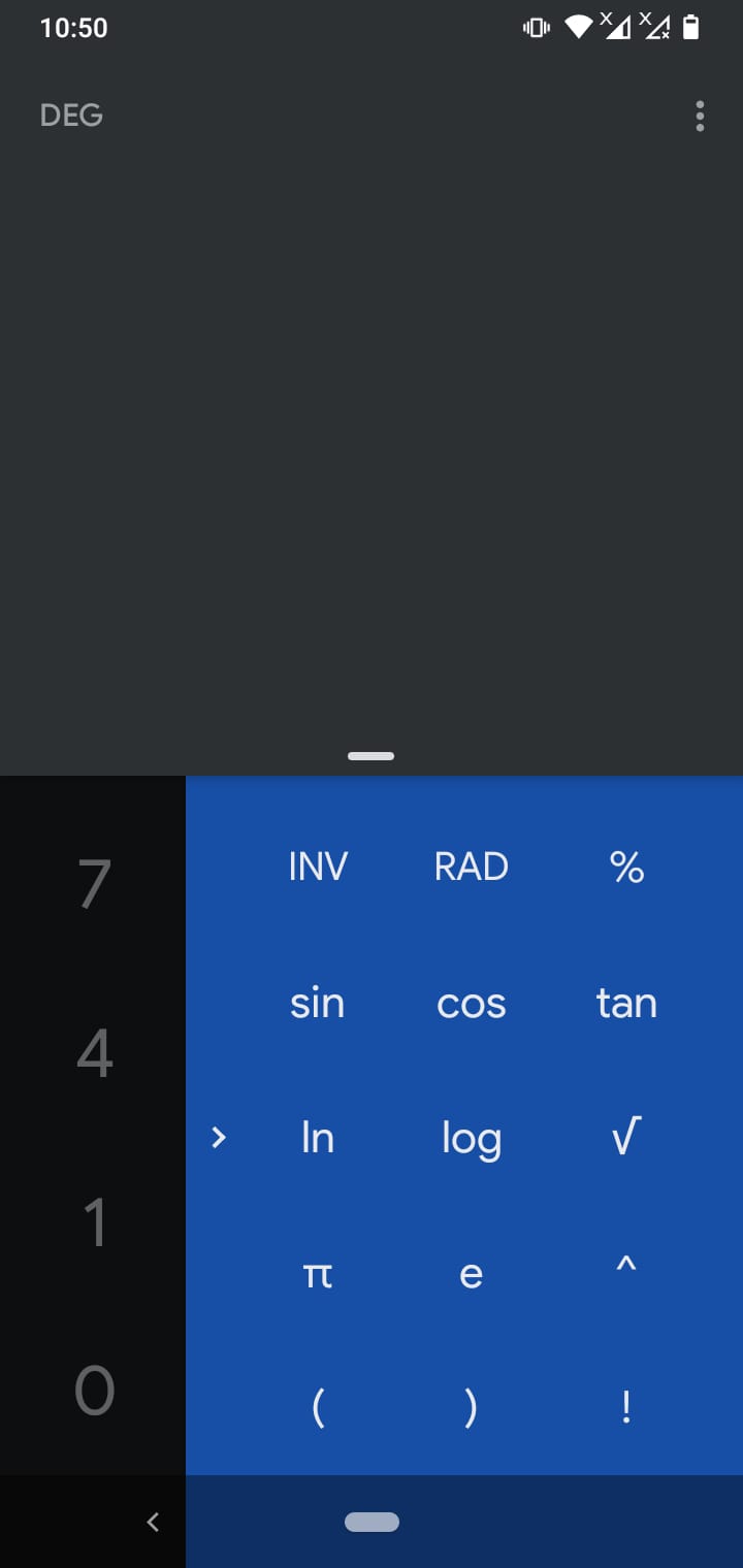 Man 認為這款計算機方便易用,介面清晰,支援 dark theme,不但適合日常簡單計算,也有進階的功能,例如計算三角學需要的 sin、cos、tan,還有 ln、log、開方等等 (滿滿的中學回憶)。