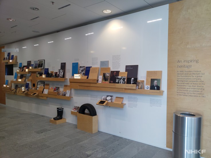在 Nokia Campus 裏,只有 Nokia One 大樓可供訪客進入,不過參觀的範圍僅限大堂,且不能光顧員工飯堂。先向 receptionist 登記,就可以在大堂隨便坐坐,看一下 Nokia 的歷史牆。