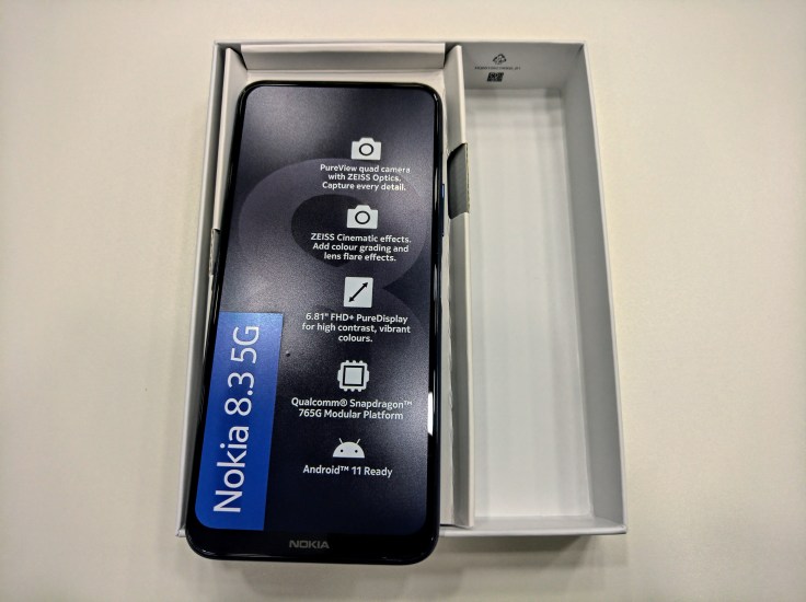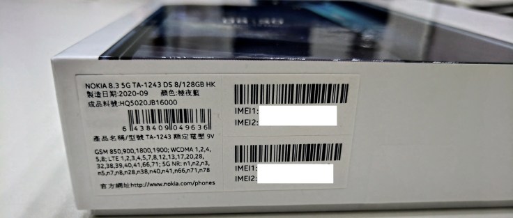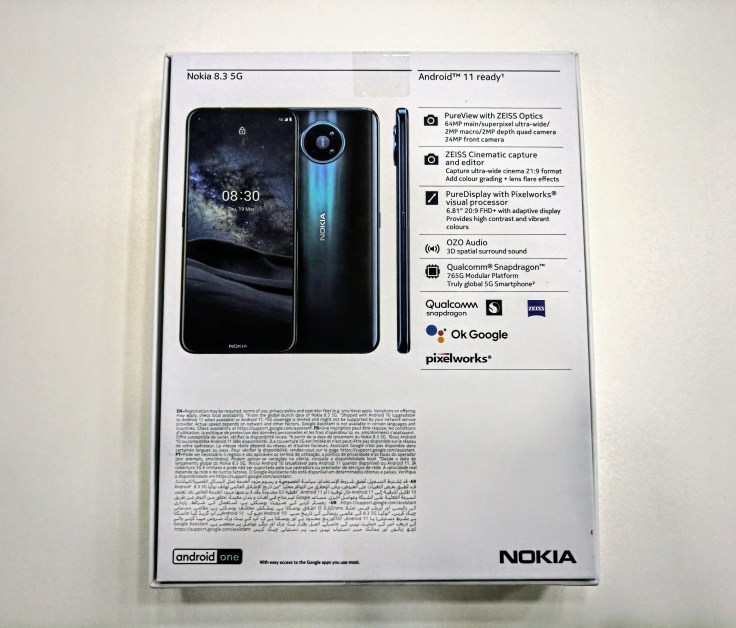 從包裝盒背面可知,Nokia 8.3 5G 將會升上 Android 11,不但使用蔡司認證鏡頭,而且內置 Zeiss Cinematic Capture and Editor,可以攝錄具專業電影效果的影片,並提供龐大的後製空間