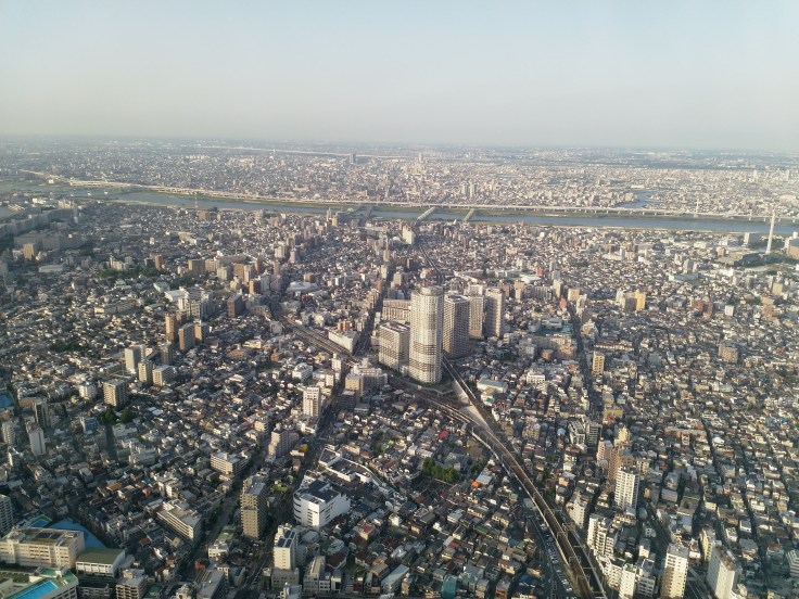 登東京的晴空塔,以凌雲之態傲視東京,確且望不見歡欣人面,只有無數建築物,屬典型現代都市景況。當日特意選在黃昏時分登塔,欣賞日落美景,暮色迷人,也望見前方一片單薄的雲煙,別有一番景象。