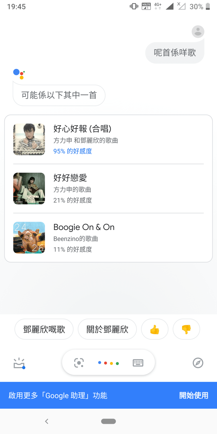 除了日常實用功能,其實 Google Assistant 還提供不少有趣功能,例如估歌仔,用家可以唱出或哼出歌曲某一段,然後軟件會利用人工智能搜尋出相關歌曲。這個功能比多年前的 Shazam 更強大,因為我們的歌聲往往比原唱相差甚遠。作為音樂愛好者,Man 決定親自測試,隨意找來多首廣東話、國語、台語、英語、日文歌,挑戰 Google Assistant!