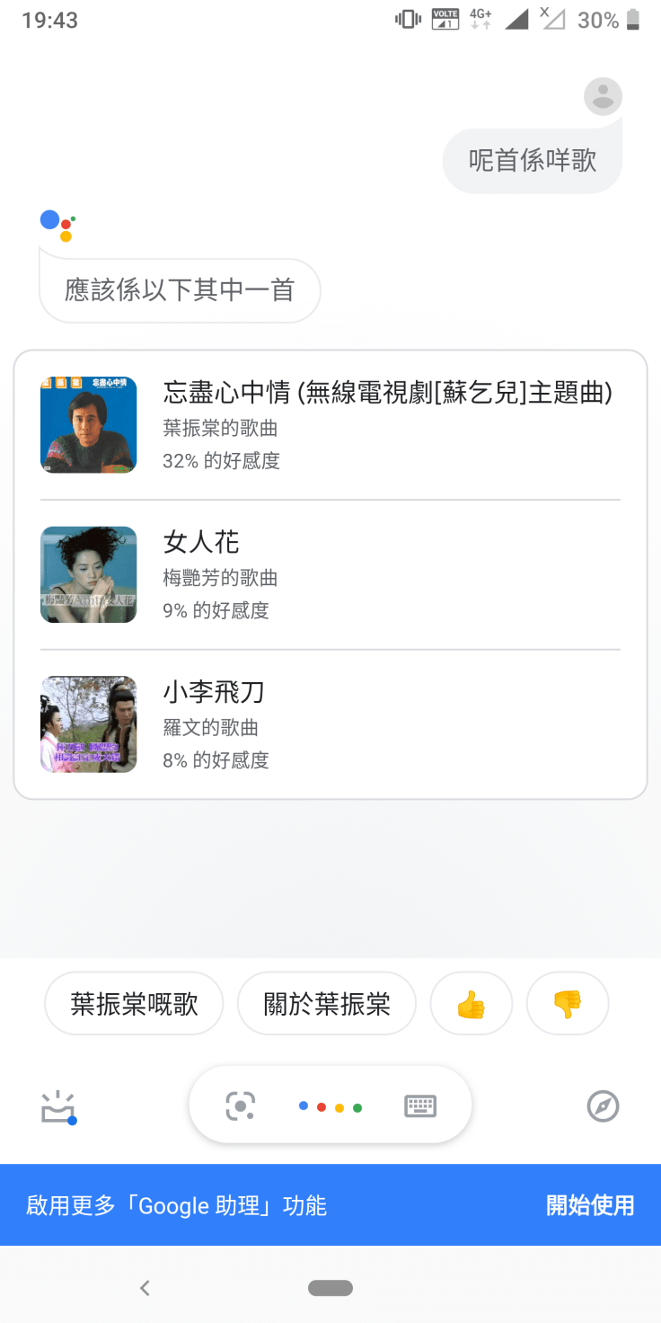怎少得葉振棠的忘盡心中情,可見 Google 對舊歌瞭如指掌
