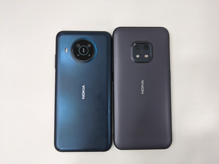 雖然兩者螢幕尺寸相同,然而 Nokia XR20 較長。另外 Nokia X10 的塑膠機身外觀貌似金屬,與 Nokia XR20 的膠味有所分別