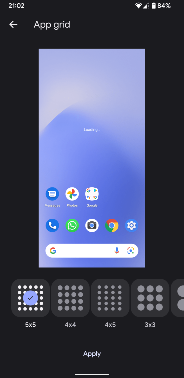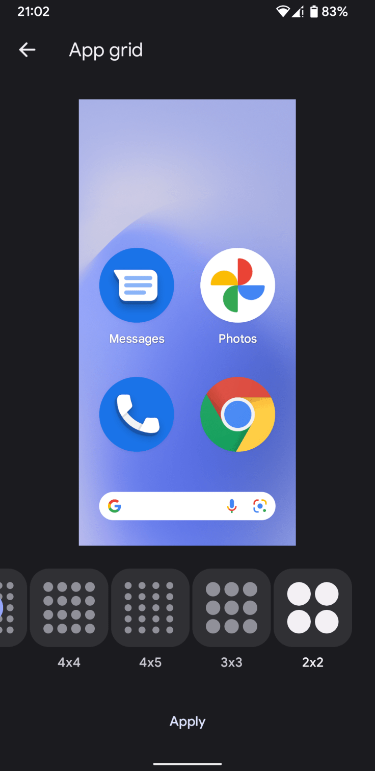 另外,Android 12 增設一個非常實用而靈活的設定,就是 App Grid。用戶可選擇主畫面的布局及圖示尺寸,照顧不同類型的消費者。