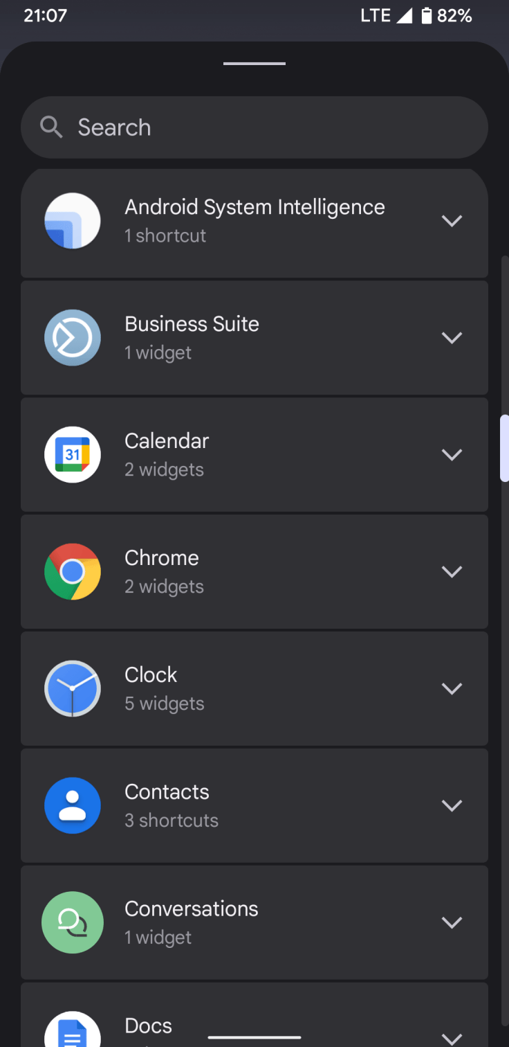 主畫面的 widgets 庫,展示方式有所不同,要先選取 app 方可預覽 widget 外觀,不夠過往般直接