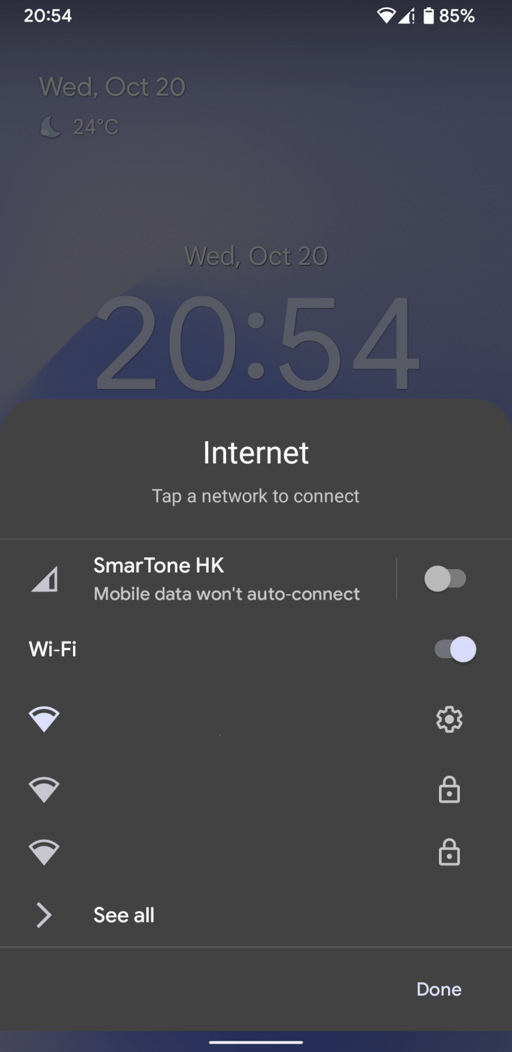 最令人不滿就是 Google 把流動數據、WiFi 兩大快速設定合併,若要開關其中一個,需要先點擊 Internet,然後再選擇開關流動數據或 WiFi,顯然多此一舉,加添麻煩。另外,快速設定可直接選取 WiFi 網絡,為一小進步