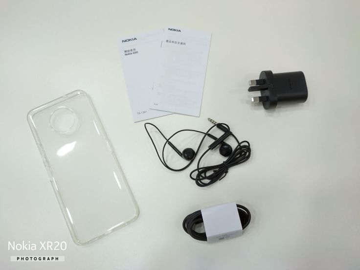 隨盒附送透明手機膠套 (終於不是破壞機身美觀的灰色套)、USB Type C 線材、10W 充電器、有線耳機。事實上 Nokia G50 支援 15W 充電,HMD 如此 cut cost 未免令人失望