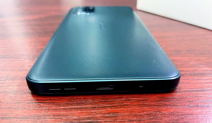 SIM 卡槽位於 Google Assistant 按鍵上方,Nokia G21 提供三卡槽,可同時使用雙 SIM 卡及 MicroSD