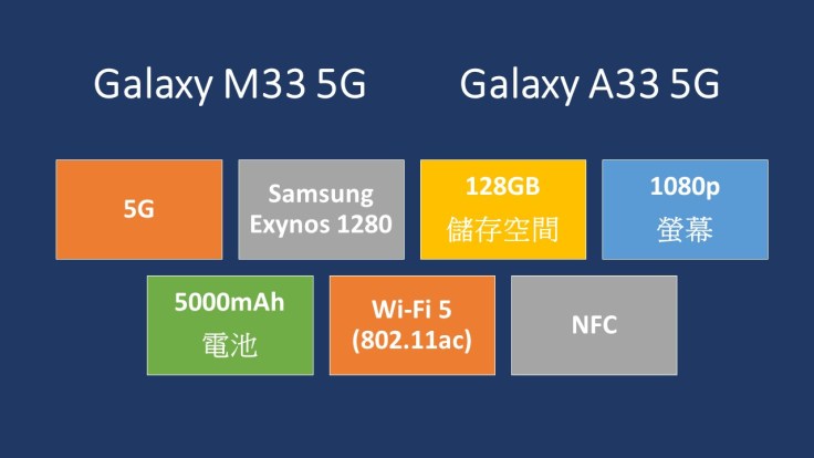 至於 5G NR 網絡頻譜支援,Galaxy A33 支援較少頻段,卻設 Galaxy M33 欠缺的 N79
