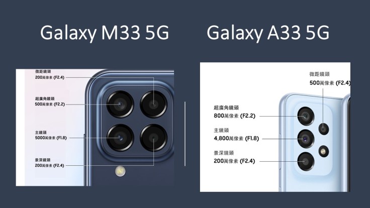 價錢較高的 Galaxy A33 主鏡頭支援 OIS 光學防手震技術,提升夜拍成像質素,另外前置鏡頭也有分別