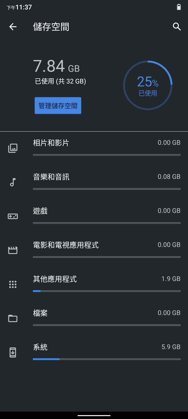 內置儲存容量由 16GB 躍升至 32GB,換來更多空間安裝程式及儲存檔案,開機後剩餘空間超過24GB,系統本身佔用5.9GB,而 Nokia G21 系統則佔用15GB,可見 Android Go 系統輕盈簡便。