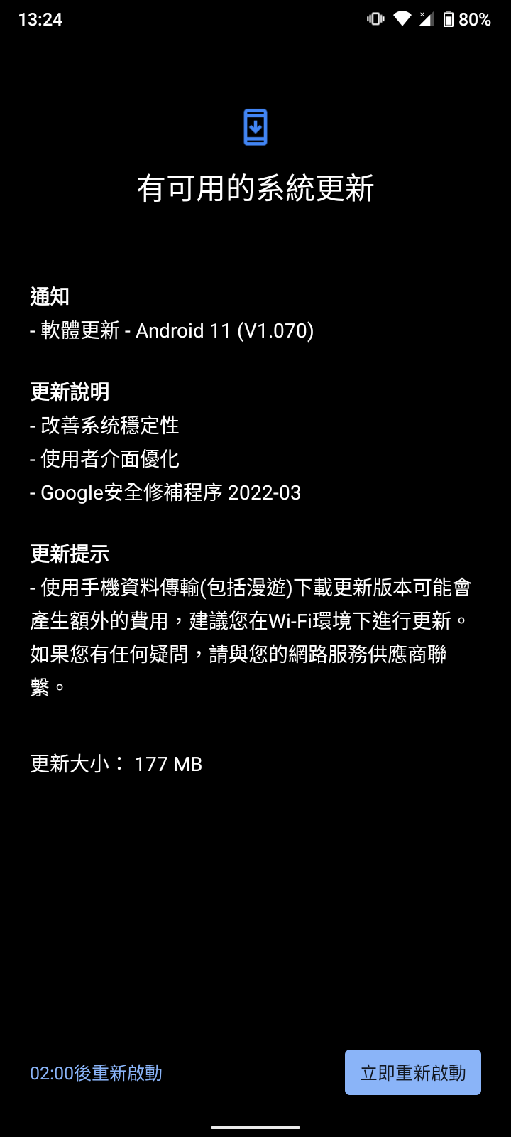另外,Nokia C21 擁有兩年安全更新保證,每季一次,早前 Man 就收到三月份的更新。更新頻率固然不可與其他 Nokia 型號的每月安全更新相比,畢竟一分錢一分貨。然而市面上又有甚麼數百元的電話提供定期安全更新確保用家得到最新防護?