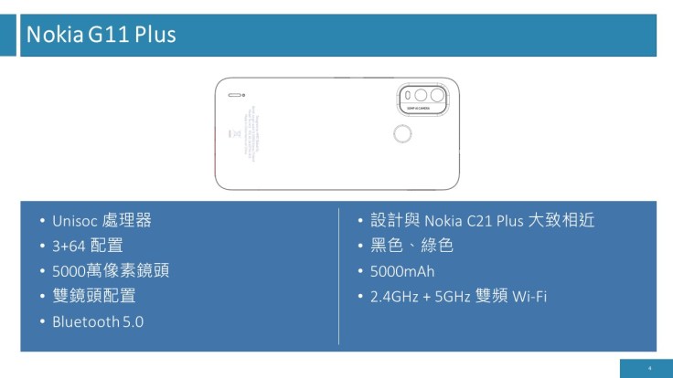 Nokia G11 Plus 流傳硬件規格介乎 Nokia G11、Nokia G21 之間,保留了 5000mAH、雙頻 WiFi 兩大特色
