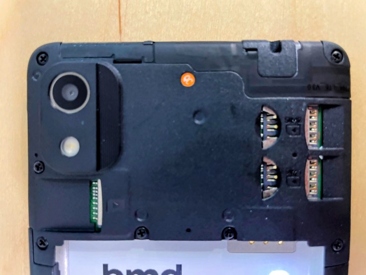 打開外殼,可以插入雙 SIM 卡、MicroSD,另外可以拆除電池