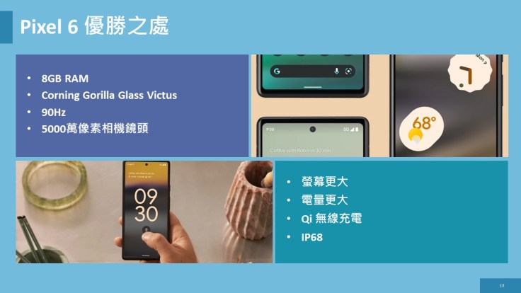 最後,Pixel 6 雖說是去年的舊型號,不過始終是旗艦級產品,仍保持不少優點和獨特之處,尤其是相機主鏡頭、螢幕玻璃、Qi 無線充電、防水防塵級別,Pixel 6a 作為中階機有所不足也是理所當然。另外,Pixel 6 配備 8GB RAM,比 Pixel 6a 多 2GB RAM,就算兩者皆使用同一處理器,效能還是有高低之分,值得留意