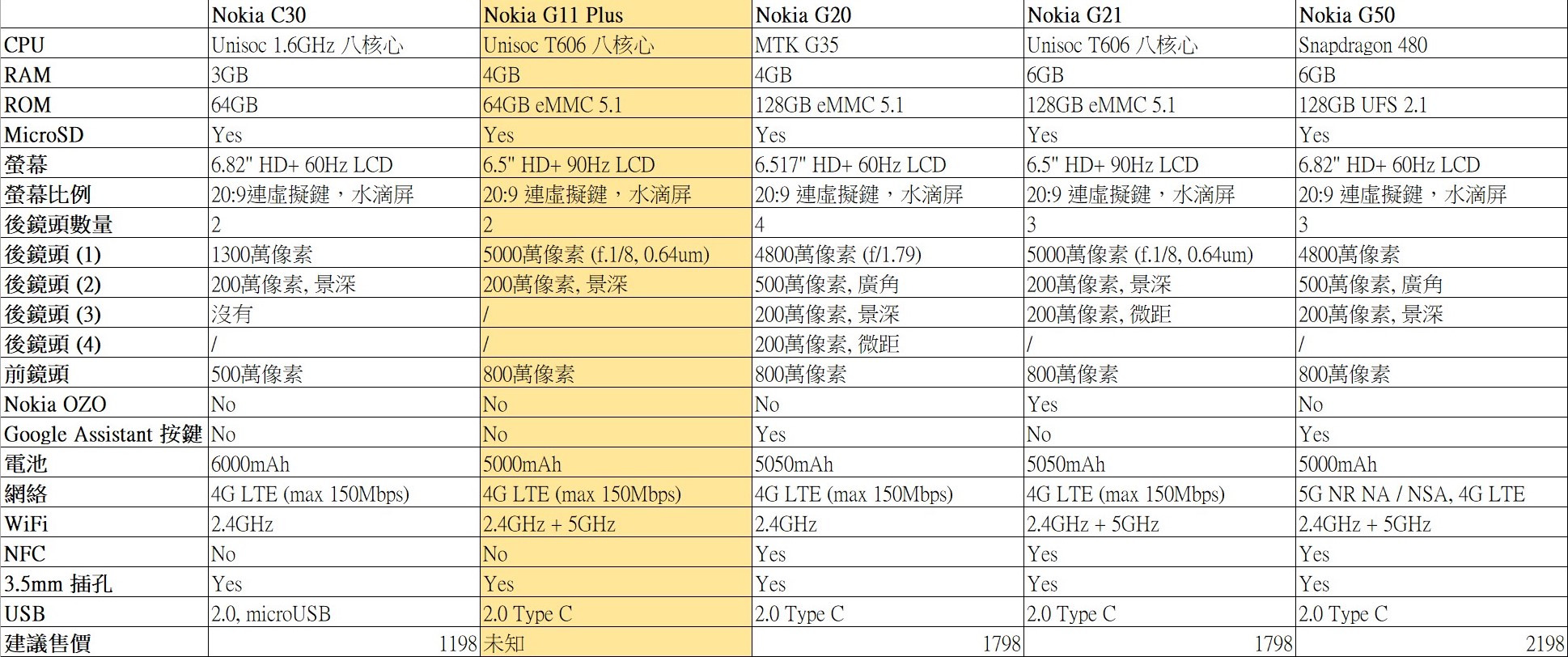 不加價但加料: Nokia G21、Nokia G50、Nokia G20 規格分析及比較