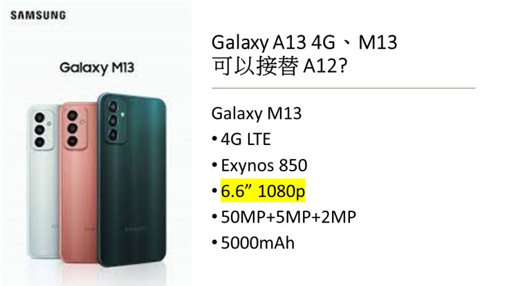個人認為,Galaxy A13 4G、Galaxy M13 兩部新機可以接替 Galaxy A12,畢竟 Galaxy A12 實在太舊 (2020年的產物),香港 Samsung 的確需要一部新款平價 4G 機接力,即使 5G 普及程度有所進步,大品牌平價 4G 手機仍然存在號召力,所以二選其一引入香港發售可說是非常合理。