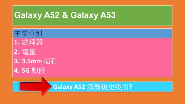 去年 Samsung Galaxy A52 定價得宜,口碑甚佳,今年 Samsung 推出後繼作 Galaxy A53,定價維持港幣3998,在相同設計下小幅修改規格,未見重大升級。新機面世,舊機 Galaxy A52 自然要減價,事實上 Galaxy A52 絕非毫無競爭力,到底哪一部較划算? 本文就為大家比較兩代規格,分析各自優點與缺點,提供買機參考。