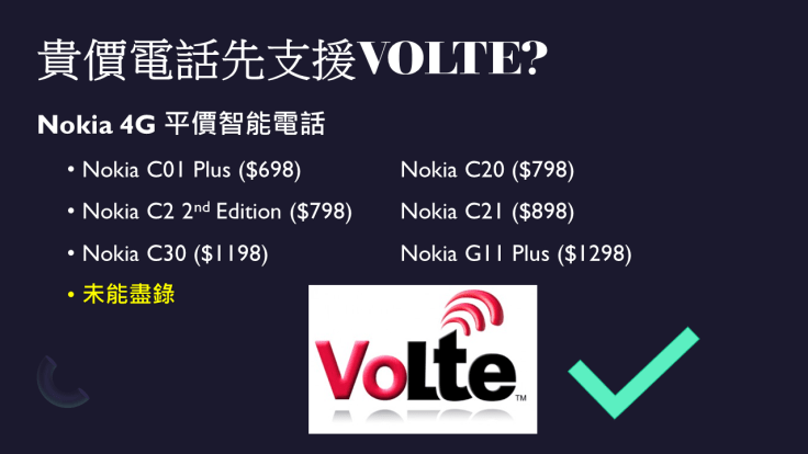- 平價 Nokia 4G 智能手機 Nokia C01 Plus、Nokia C20、Nokia C21、Nokia C2 2nd Edition、Nokia C30、Nokia C31 等均支援 VOLTE