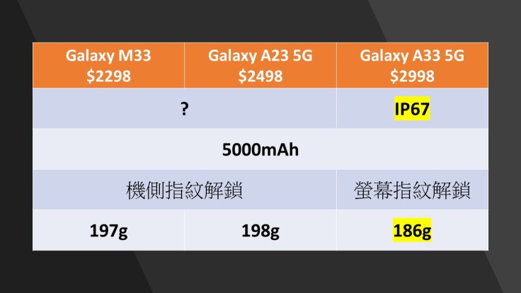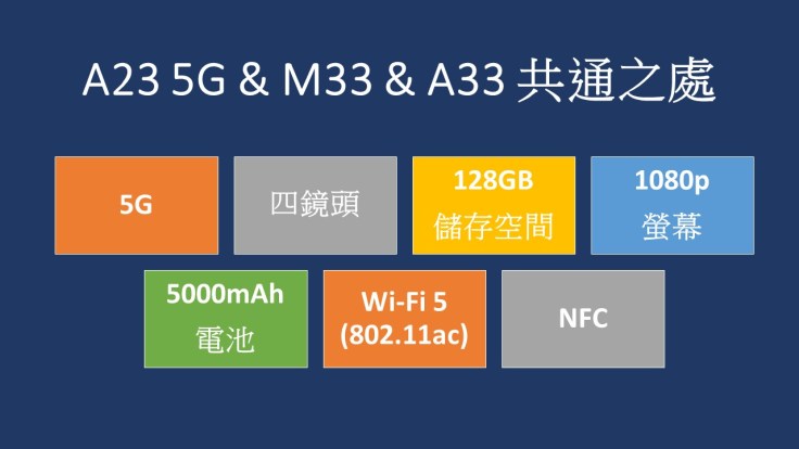 Samsung Galaxy A23 5G、M33、A33 規格共通之處
