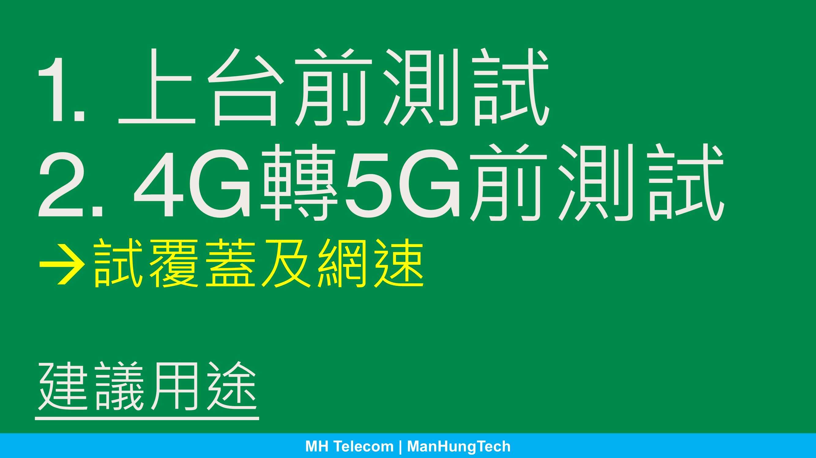 - 現有 SmarTone 4G 上台客戶,續約考慮升級 5G,欲先測試覆蓋、速度