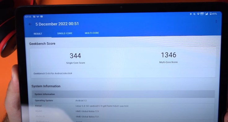 更新: 本站為 Nokia T21 進行 Geekbench 5 測試結果: